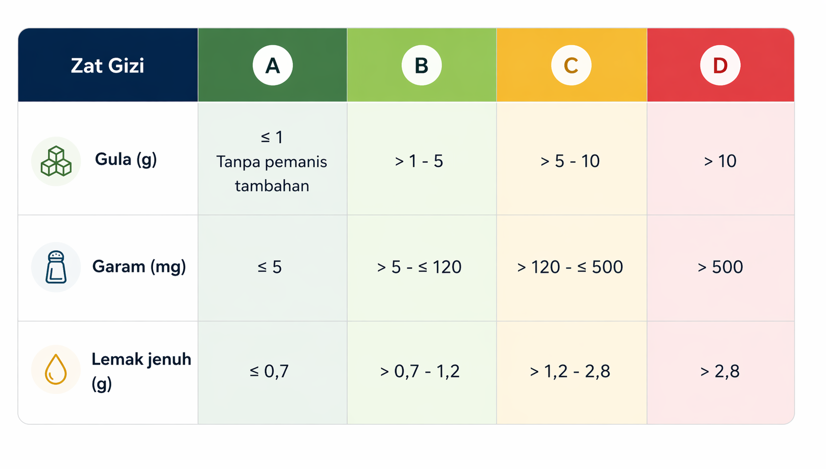 Source: Nutri-Level labeling guidelines by the Ministry of Health of the Republic of Indonesia.